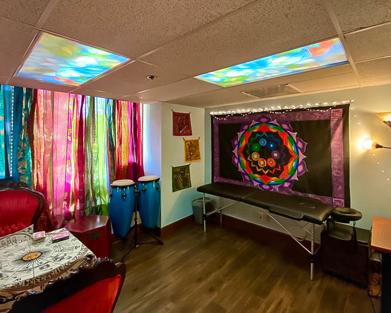 This new addition to the shop is a multi-purpose room available for reservation by any readers, bodyworkers, or other spiritual practitioners looking for a cozy, vibrant space to work with their clients privately. Renting the room grants access to the rest of the shop's amenities including restrooms and our coffee/tea bar.